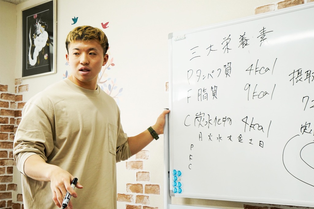 代表の橋本はボディビルの大会への出場経験もあります。解剖生理学と自分自身の経験を元に、一人ひとりに合ったトレーニングを提案します。
